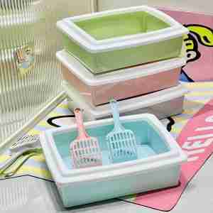 Semi-Enclosed Square Cat Litter Box (with Scoop)