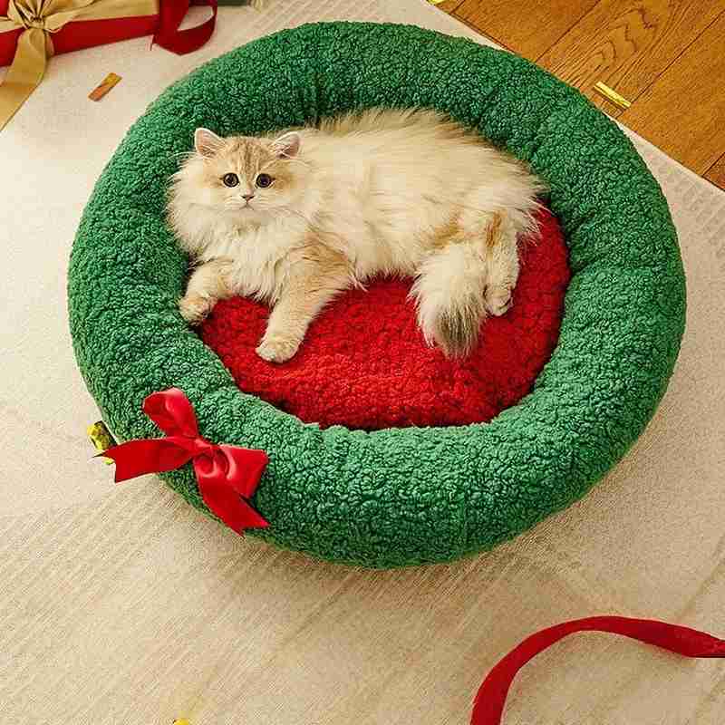 Semi-Closed Christmas Pet Nest designed to provide warm, cozy comfort for pets during cold winter days. This Christmas-themed pet bed features a semi-closed structure that helps lock in heat, creating a secure and comfortable space for deep, restful sleep. Made with soft and plush materials, it is ideal for cats and small dogs who enjoy curling up in a warm nest. The festive appearance adds seasonal charm while remaining practical for everyday use. Suitable for Amazon cross-border wholesale, this pet bed combines cute holiday style with reliable warmth, making it a popular and high-demand choice for pet supply sellers.